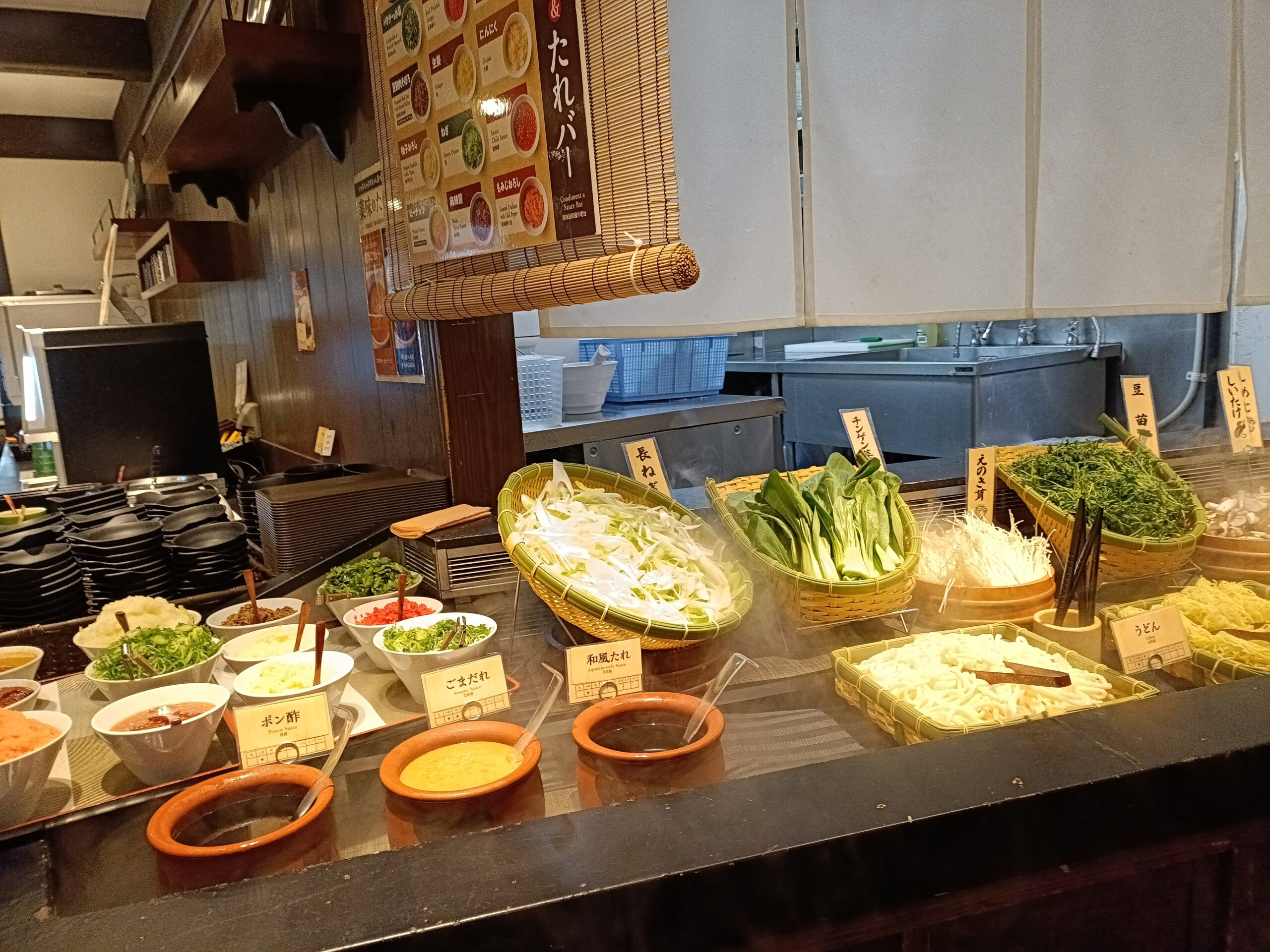 菜の庵は、池袋のルミネの飲食店フロアなどに入っている、ビュッフェ形式のしゃぶしゃぶレストランです。牛肉や豚肉はテーブルから都度オーダーするスタイルで、おかわり自由。自分のペースで少しずつ頼めるので、落ち着いて食事を楽しめます。店内はデパート内らしい落ち着いた雰囲気で、照明や内装も上品。家族連れでも友だち同士でも利用しやすい空間です。野菜やきのこ、〆のうどん・ご飯などは野菜バーにずらりと並び、好きなものを好きなだけ取れるのが魅力。彩りのよい野菜が多く、ヘルシー志向の方にもぴったりだと感じました。さらにフリードリンク付きで、ソフトドリンクの種類が豊富なのもポイント。温かいお茶やジュース類を飲みながら、時間を気にせずゆっくりしゃぶしゃぶを楽しめる、お得感のあるお店です。